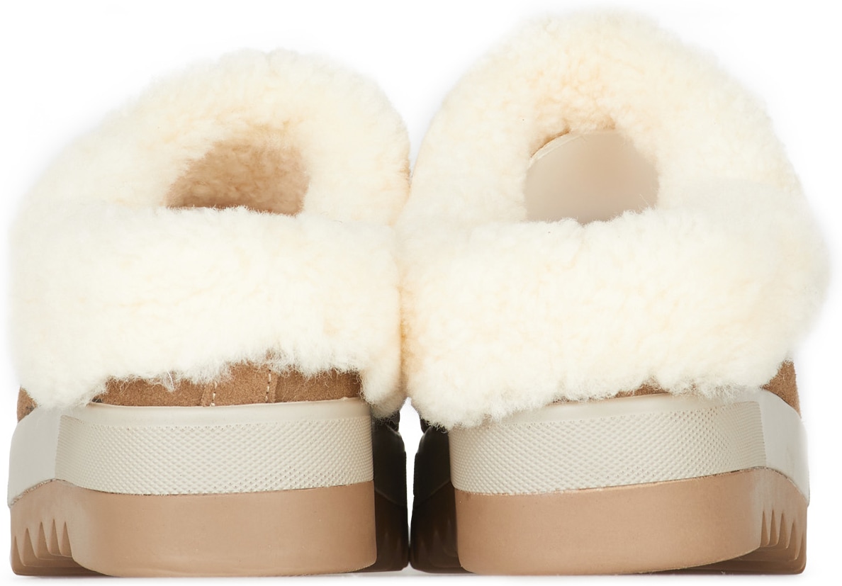 Step into luxurious comfort with these slip-on mules made from genuine curly shearling and suede, featuring a rounded toe for a classic look. The lightweight cushion outsole paired with a contrasting polyurethane midsole ensures both style and comfort with every step.