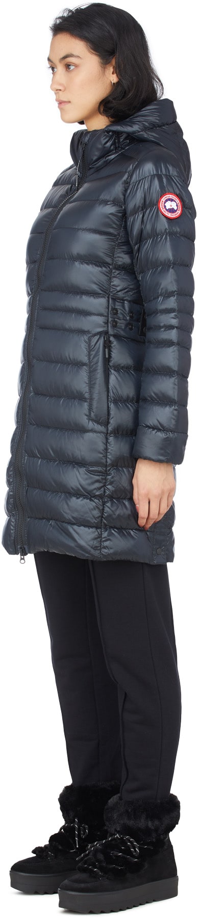 - Adjustable drawcord down hood with back double-stripe reflective detail.