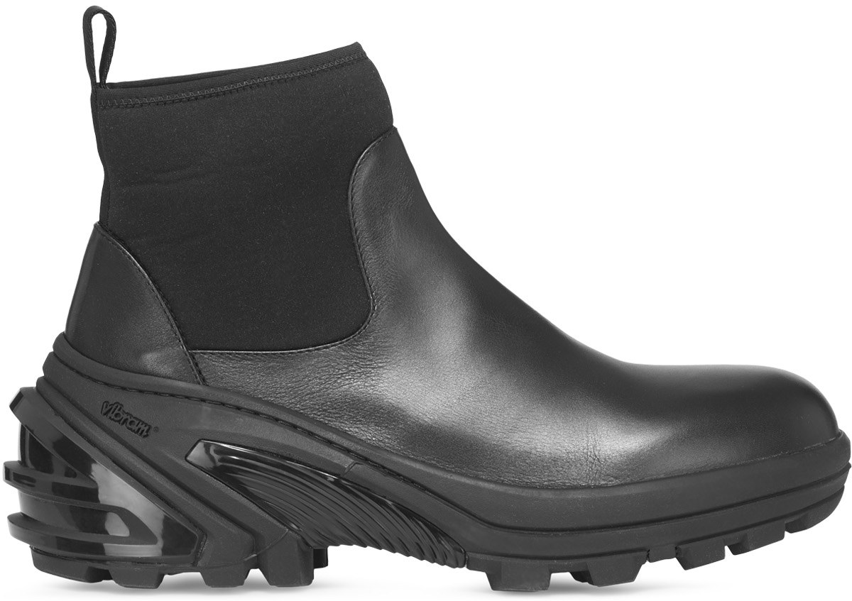 Ces bottes Chelsea en cuir végétalien de taille moyenne sont dotées d'une semelle Vibram fixe, alliant durabilité et style dans un design élégant parfait pour toutes les occasions. - Dessus en cuir végétalien. - Doublure en veau. - Col en néoprène avec élastique sur le dessus. - Tirette ton sur ton au niveau du talon. - Semelle extérieure fixe en caoutchouc Vibram.