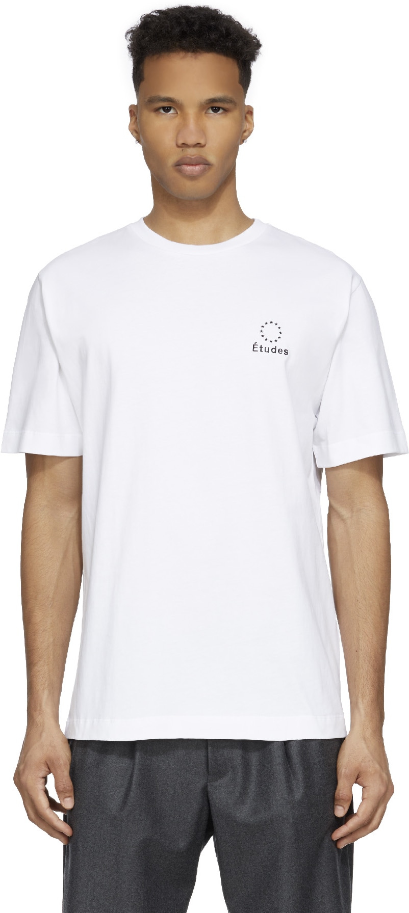Ce t-shirt blanc à manches courtes en jersey de coton présente un col ras du cou en maille côtelée et un petit logo Études brodé sur la poitrine. Avec sa coupe régulière, il offre un style classique et polyvalent à porter au quotidien. - Coupe régulière. - Col ras-du-cou côtelé. - Logo Études Europa brodé sur la poitrine gauche.